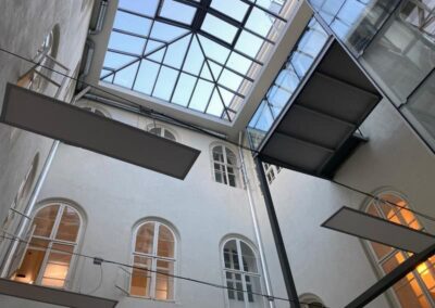 Stavební úpravy objektu, především dispoziční úpravy v jednotlivých podlaží a s tím související rozvody ZTI, elektro a VZT. Součástí úprav bylo provedení proskleného zastřešení atrií, provedení nové stropní konstrukce 3. NP, sanace poškozených částí krovu a nová střešní krytina. Dále pak provedení nových vnitřních výplní otvorů a zádveří včetně automatických dveří a dodávka nového laboratorního vybavení.